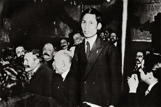 Lãnh tụ Nguyễn Ái Quốc tại Đại hội lần thứ XVIII của Đảng Xã hội Pháp ở Tous, Pháp, tháng 12-1920. Ảnh: Tư liệu