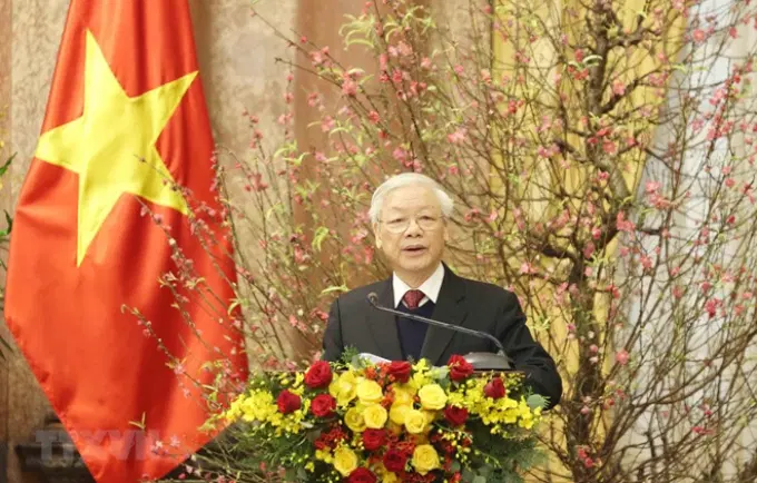 Tổng Bí thư, Chủ tịch nước Nguyễn Phú Trọng chúc Tết các đồng chí lão thành cách mạng, các đồng chí lãnh đạo, nguyên lãnh đạo Đảng, Nhà nước, Mặt trận Tổ quốc Việt Nam, cán bộ lãnh đạo các cơ quan Trung ương và Hà Nội cùng toàn thể đồng chí, đồng bào