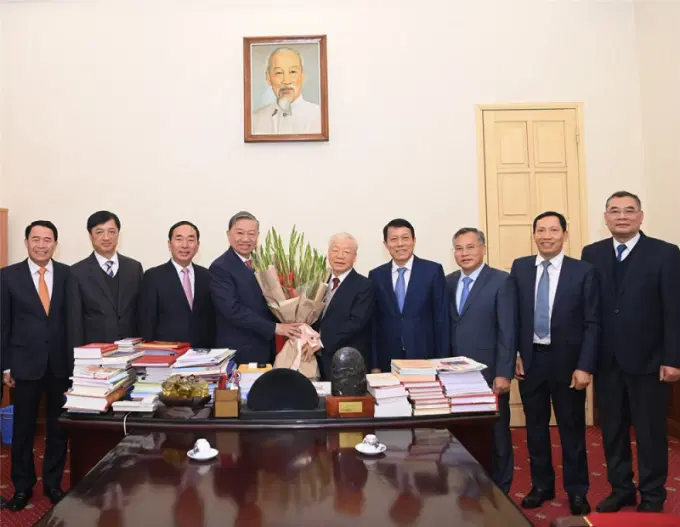 Nhân dịp Tết cổ truyền Quý Mão 2023, ngày 19/1 tại Hà Nội, Ban Thường vụ Đảng ủy Công an Trung ương, lãnh đạo Bộ Công an do Đại tướng Tô Lâm, Ủy viên Bộ Chính trị, Bí thư Đảng ủy Công an Trung ương, Bộ trưởng Bộ Công an dẫn đầu đã đến thăm, chúc Tết Tổng Bí thư Nguyễn Phú Trọng.