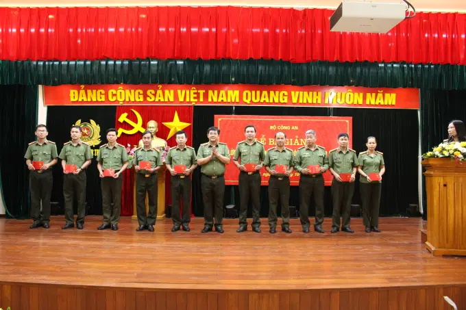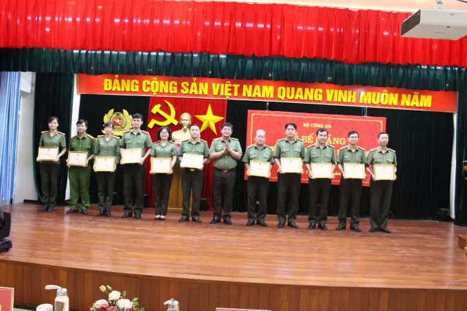 Đồng chí Thiếu tướng Trần Đức Tuấn, Phó Chánh Văn phòng Bộ Công an trao giấy khen cho các đồng chí học viên có thành tích xuất sắc và các thành viên ban quản lý lớp học