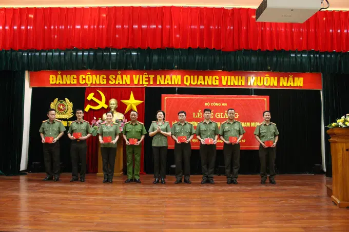 Đồng chí Thiếu tướng Trần Đức Tuấn, Phó Chánh Văn phòng Bộ Công an trao chứng nhận cho các đồng chí học viên