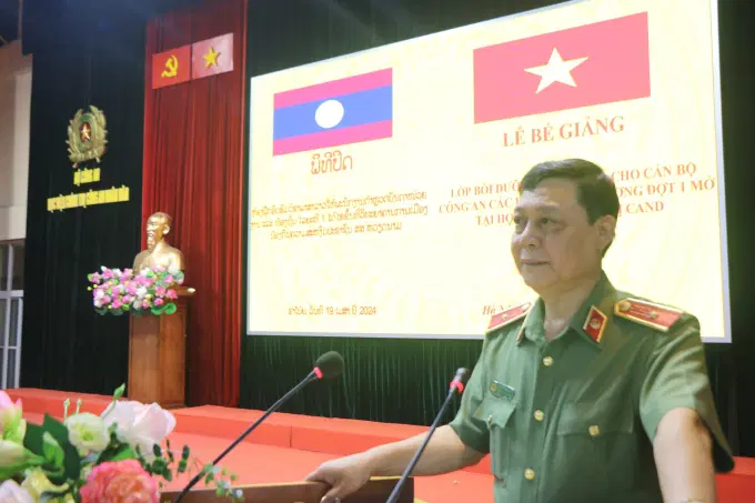 Phát biểu tại buổi lễ, thay mặt Đảng ủy, Ban Giám đốc Học viện, đồng chí Thiếu tướng, TS Nguyễn Như Lôi, Phó Bí thư Đảng ủy, Phó Giám đốc Học viện chúc mừng các học viên đã hoàn thành chương trình bồi dưỡng đạt kết quả cao. Đồng chí Phó Giám đốc cảm ơn các chuyên gia Bộ Công an Lào đã khắc phục khó khăn, hoàn thành nhiệm vụ giảng dạy cho cán bộ Công an Việt Nam; biểu dương các học viên của lớp học đã nêu cao tinh thần trách nhiệm, tích cực, chủ động học tập tiếp thu kiến thức mới. Đồng chí bày tỏ mong muốn, các học viên với những kiến thức đã được học sẽ áp dụng tốt vào thực tiễn công tác, nâng cao chất lượng, hiệu quả thực hiện nhiệm vụ được giao. Đồng thời, mỗi học viên cũng sẽ mang theo những kỷ niệm đẹp về mái trường Học viện Chính trị CAND.