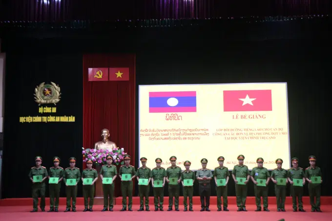 Lớp bồi dưỡng tiếng Lảo cho cán bộ Công an các đơn vị, địa phương, đợt 1, năm học 2023-2024 gồm 100 học viên đến từ 26 Công an các đơn vị, địa phương trong cả nước. Trong 06 tháng tham gia lớp học, các học viên được chuyên gia Bộ Công an Lào giảng dạy các kiến thức cơ bản về ngôn ngữ, văn hóa Lào. Kết thúc khóa học, các học viên tham gia kỳ thi đánh giá kết quả học tập và được Bộ Công an Lào cấp chứng chỉ.