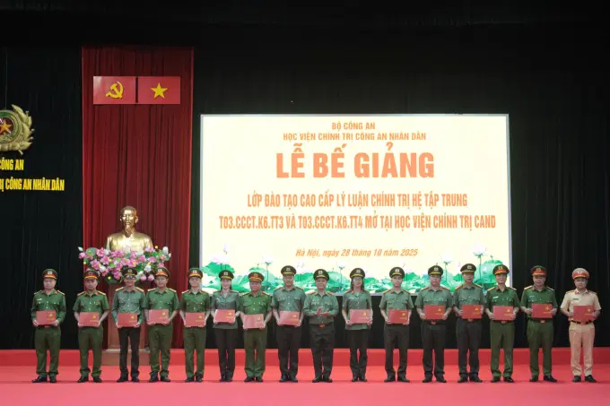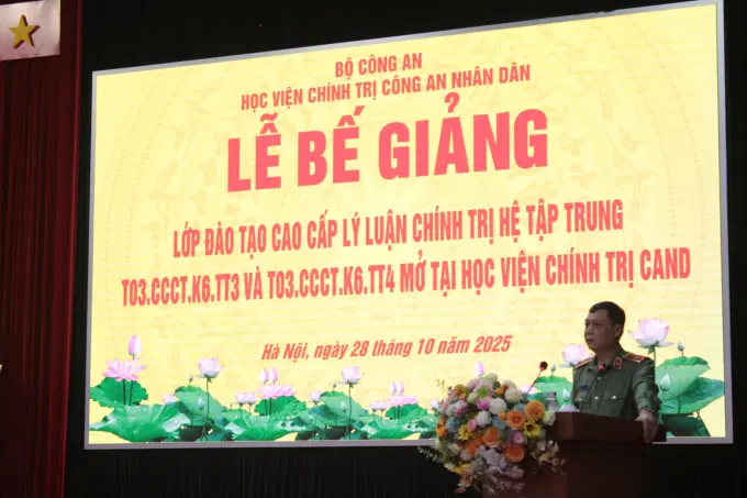 Ngày 28/10/2025, Học viện Chính trị CAND tổ chức Lễ Bế giảng lớp đào tạo trình độ cao cấp LLCT hệ tập trung Khóa 6, lớp T03.CCCT.K6.TT3 - T03.CCCT.K6.TT4 mở tại Học viện. Đồng chí Thiếu tướng, TS Nguyễn Như Lôi, Phó Bí thư Đảng ủy, Phó Giám đốc Học viện Chính trị CAND chủ trì buổi Lễ. Tham dự buổi lễ có TS Nguyễn Văn Viên, Phó Vụ trưởng Vụ các trường chính trị, Học viện Chính trị quốc gia Hồ Chí Minh, đại diện Cục Đào tạo, đại diện lãnh đạo các đơn vị chức năng thuộc Học viện cùng toàn thể học viên khóa học.