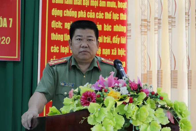 Đồng chí Đại tá Lương Văn Bền, Phó Giám đốc Công an thành phố Cần Thơ phát biểu