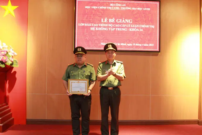 Ngày 19 tháng 4 năm 2025, tại thành phố Hồ Chí Minh, Học viện Chính trị CAND phối hợp với Trường Đại học An ninh nhân dân tổ chức lễ bế giảng lớp đào tạo trình độ Cao cấp lý luận chính trị, hệ không tập trung, khóa 14 mở tại Trường Đại học An ninh nhân dân. Đồng chí PGS.TS, NGƯT, Trung tướng Phan Xuân Tuy, Bí thư Đảng ủy, Giám đốc Học viện chủ trì buổi lễ.