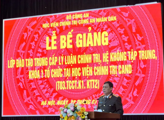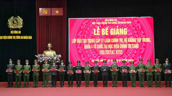 Ngày 22/01/2026, Học viện Chính trị CAND tổ chức lễ Bế giảng Lớp đào tạo trung cấp lý luận chính trị, hệ không tập trung - Khóa 1 mở tại Học viện (Lớp T03.TCCT.K1.KTT2). Đồng chí TS. Thiếu tướng Nguyễn Như Lôi, Phó Bí Thư Đảng ủy, Phó Giám đốc Học viện Chính trị Công an nhân chủ trì buổi lễ. Tham dự buổi lễ có đại diện lãnh đạo Cục Đào tạo, đại diện lãnh đạo các đơn vị chức năng thuộc Học viện cùng toàn thể học viên lớp học.
