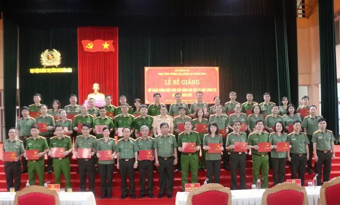 Phát biểu tại buổi Lễ, đồng chí Giám đốc Học viện chúc mừng các học viên của lớp học đã hoàn thành tốt khóa học, đạt kết quả cao và gửi lời cảm ơn sự phối hợp, giúp đỡ nhiệt tình, trách nhiệm của các cơ quan, đơn vị chức năng, đặc biệt là Cục Đào tạo, Bộ Công an. Đồng chí Giám đốc đề nghị học viên sau khi kết thúc khóa học trở về đơn vị sẽ: vận dụng những kiến thức đã học một cách sáng tạo mang lại hiệu quả công tác cao; là những chiến sĩ tiên phong trong nhiệm vụ bảo vệ nền tảng tư tưởng của Đảng, đấu tranh phản bác quan điểm sai trái, thù địch, tuyên truyền, bảo vệ chủ nghĩa Mác - Lênin, tư tưởng Hồ Chí Minh, đường lối đổi mới của Đảng, Nhà nước, xây dựng hình ảnh đẹp về người chiến sĩ Công an nhân dân; không ngừng học tập, nghiên cứu, nỗ lực phấn đấu nâng cao trình độ, thường xuyên cập nhật kiến thức, tình hình chính trị, tình hình thời sự trong và ngoài nước để làm giàu thêm tri thức; qua thực tiễn công tác, chiến đấu phát hiện những điểm mới góp phần phát triển hệ thống lý luận trong công tác, chiến đấu và xây dựng Đảng, xây dựng lực lượng Công an nhân dân ngày càng vững mạnh.