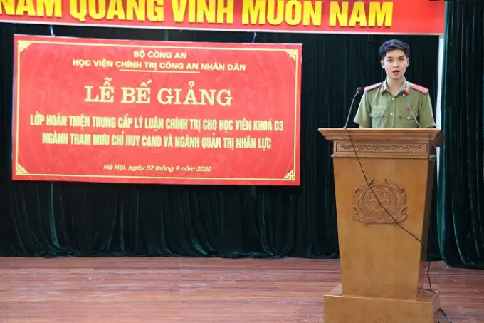 Ngày 07/9/2020, Học viện Chính trị Công an nhân dân tổ chức Lễ Bế giảng lớp hoàn thiện Trung cấp lý luận chính trị cho học viên Khóa D3 ngành Tham mưu chỉ huy Công an nhân dân và ngành Quản trị nhân lực. Đồng chí Đại tá, PGS.TS Đinh Ngọc Hoa, Phó Giám đốc Học viện chủ trì buổi lễ. Tham dự buổi lễ có: đại diện lãnh đạo các đơn vị chức năng thuộc Học viện cùng 140 học viên lớp học.