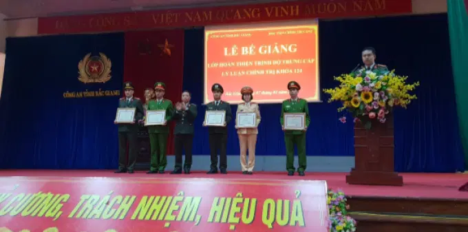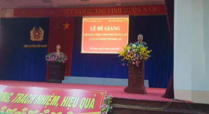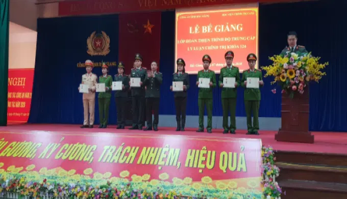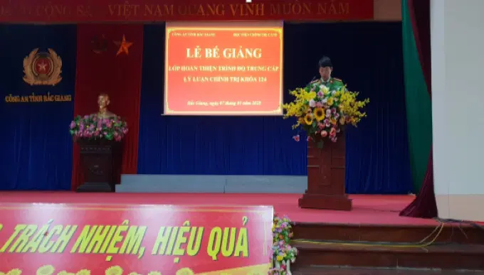 Ngày 07/01/2019, Học viện Chính trị Công an nhân dân tổ chức Lễ bế giảng Lớp hoàn thiện Trung cấp lý luận chính trị khóa 124 mở tại Công an tỉnh Bắc Giang. Đồng chí Thiếu tướng, PGS.TS Phan Xuân Tuy, Phó Giám đốc Học viện Chính trị Công an nhân dân chủ trì buổi Lễ. Tham dự Lễ bế giảng có đồng chí Đại tá Dương Ngọc Sáu, Phó Giám đốc Công an tỉnh Bắc Giang, đại diện lãnh đạo các đơn vị thuộc Học viện, Công an tỉnh Bắc Giang cùng 100 học viên tham gia khóa học.
