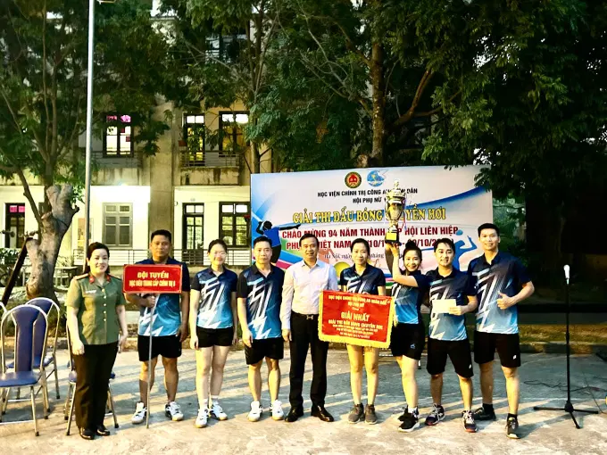Thực hiện Kế hoạch số 1921/KH-HPN ngày 04/10/2024 của Học viện Chính trị CAND về việc tổ chức các hoạt động chào mừng 94 năm ngày thành lập Hội Liên hiệp Phụ nữ Việt Nam (20/10/1930 – 20/10/2024), chiều ngày 17/10, Hội Phụ nữ Học viện Chính trị CAND đã tổ chức thi đấu trận bán kết, chung kết và bế mạc, trao giải Giải bóng chuyền hơi chào mừng Ngày thành lập Hội Liên hiệp Phụ nữ Việt Nam 20/10/2024 trong học viên các khóa, các lớp tại Học viện.