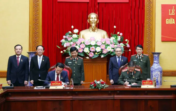Bộ trưởng Tô Lâm cùng Bộ trưởng Bộ Thông tin và Truyền thông Nguyễn Mạnh Hùng ký Quy chế phối hợp giữa 2 Bộ.