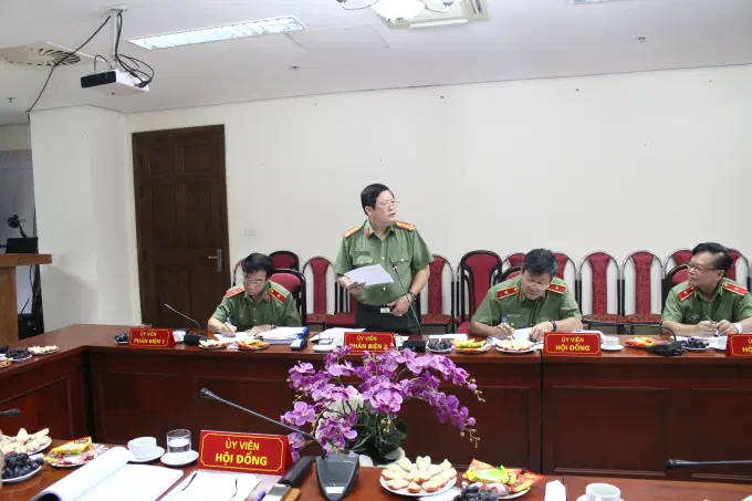 Hội đồng tư vấn, đánh giá, nghiệm thu đề tài khoa học và công nghệ cấp bộ trọng điểm do đồng chí Trung tướng, PGS.TS Trần Minh Thư, nguyên Viện trưởng Viện Chiến lược và Khoa học Công an làm Chủ tịch; các đồng chí Thiếu tướng, PGS.TS Phí Đức Tuấn, nguyên Phó Giám đốc Học viện An ninh nhân dân, Ủy viên phản biện 1; Đại tá Phan Nguyên Hùng, Phó Cục trưởng Cục An ninh nội địa, Ủy viên phản biện 2; Trung tướng, PGS.TS Hoàng Kông Tư, nguyên Quyền Tổng Cục trưởng Tổng cục An ninh II, Ủy viên Hội đồng; Thiếu tướng Nguyễn Xuân Hà, Phó Cục trưởng Cục An ninh nội địa, Ủy viên Hội đồng; Thiếu tướng Nguyễn Xuân Toản, Phó Cục trưởng Cục Pháp chế và cải cách hành chính, tư pháp, Ủy viên Hội đồng; Thiếu tướng Nguyễn Hồng Thái, Phó Cục trưởng Cục Khoa học, Chiến lược và Lịch sử Công an, Ủy viên Hội đồng; Thiếu tướng, PGS.TS Bạch Thành Định, nguyên Phó Giám đốc Công an thành phố Hà Nội, Ủy viên Hội đồng; Trung tá Giản Quốc Bình, Phó Trưởng phòng, Cục Khoa học, Chiến lược và Lịch sử Công an, Ủy viên Thư ký. Tham gia buổi nghiệm thu còn có đại diện một số đơn vị chức năng và các thành viên Ban Chủ nhiệm đề tài.