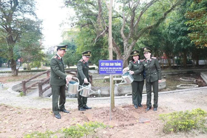 Nhân dịp này, Bộ trưởng cũng đề nghị Học viện Chính trị CAND tăng cường gìn giữ cảnh quan môi trường, trồng thêm nhiều cây xanh và cùng với nhân dân nơi trường đóng quân phát động phong trào trồng cây, thường xuyên cùng với địa phương làm xanh, sạch đẹp môi trường theo đúng yêu cầu chỉ đạo của Thủ tướng Chính phủ và Bộ Công an.