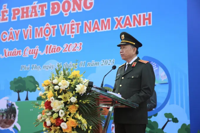 Bộ trưởng Tô Lâm phát biểu phát động “Tết trồng cây - Vì một Việt Nam xanh” Xuân Quý Mão năm 2023 của Bộ Công an.