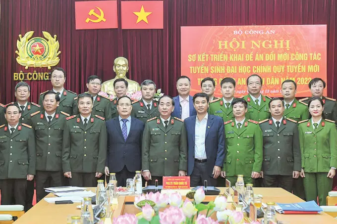 Thượng tướng, PGS.TS Trần Quốc Tỏ, Ủy viên Trung ương Đảng, Phó Bí thư Đảng uỷ Công an Trung ương, Thứ trưởng Bộ Công an với các đại biểu tham dự Hội nghị sơ kết triển khai Đề án đổi mới công tác tuyển sinh đại học chính quy tuyển mới trong CAND năm 2022, ngày 1/12/2022.