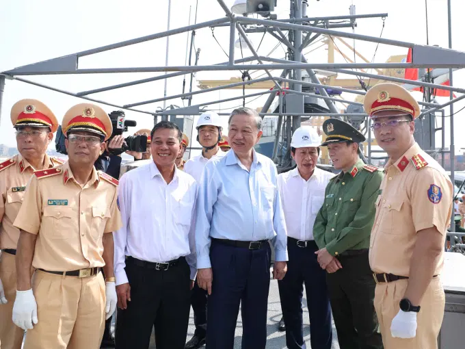 Tổng Bí thư Tô Lâm kiểm tra tàu tuần tra do Cơ quan Cảnh sát biển Hàn Quốc viện trợ Bộ Công an Việt Nam tại thành phố Hải Phòng _Ảnh: TTXVN