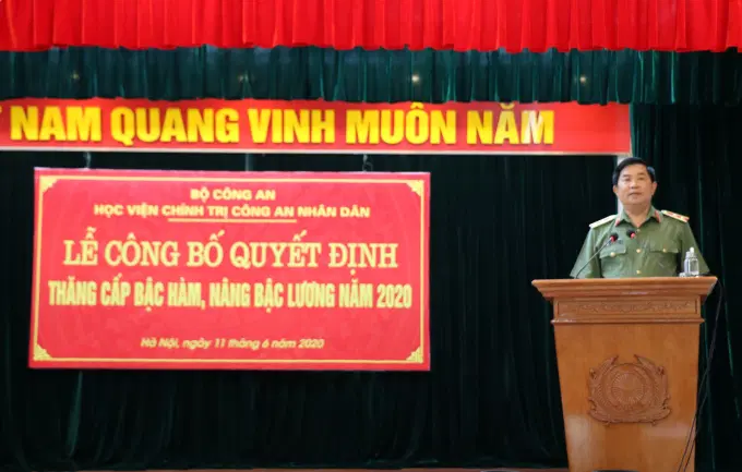 Ngày 11/6/2020, Học viện Chính trị Công an nhân dân tổ chức Lễ công bố quyết định thăng cấp bậc hàm, nâng bậc lương năm 2020 cho 73 đồng chí đến niên hạn. Trung tướng, PGS.TS Trần Vi Dân, Bí thư Đảng ủy, Giám đốc Học viện chủ trì buổi Lễ.