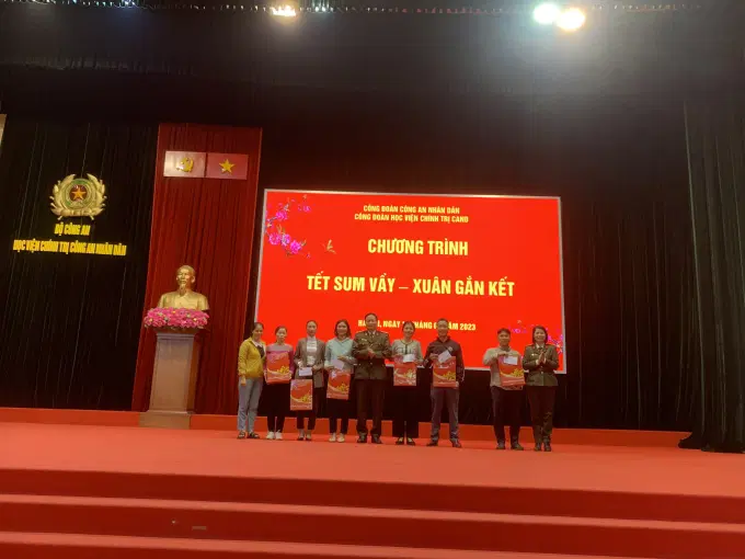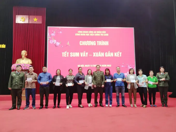 Trong không khí vui tươi chào mừng kỷ niệm 93 năm ngày thành lập Đảng Cộng sản Việt Nam (03/02/1930-03/02/2023) và mừng xuân Quý Mão 2023; thiết thực chào mừng Đại hội Công đoàn các cấp tiến tới Đại hội XIII Công đoàn Việt Nam, nhiệm kỳ 2023-2028; thực hiện Kế hoạch số 45/KH-CĐCA, ngày 19/12/2022 của Công đoàn Học viện Chính trị CAND về tổ chức chương trình Tết sum vầy – Xuân gắn kết” nhân dịp Tết Nguyên đán, nhằm chăm lo tốt hơn đời sống vật chất, tinh thần cho đoàn viên, Công đoàn Học viện đã tổ chức chuỗi các hoạt động vì lợi ích đoàn viên, thăm hỏi, tặng quà,… tạo không khí thi đua sôi nổi trong đoàn viên, người lao động.