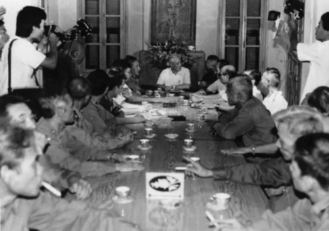 Đồng chí Mai Chí Thọ, Ủy viên Bộ Chính trị, Bộ trưởng Bộ Nội vụ thăm và làm việc với lãnh đạo Bộ Tư lệnh Biên phòng sau khi Bộ Tư lệnh Biên phòng sáp nhập về Bộ Nội vụ tại Hội trường cơ quan Bộ Tư lệnh Biên phòng, ngày 19/8/1988