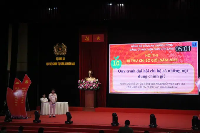 Ngày 13/4/2023, Đảng ủy Học viện Chính trị CAND trang trọng tổ chức Hội thi bí thư chi bộ giỏi trong Đảng bộ Học viện theo Kế hoạch số 183-KH/ĐUT03, ngày 31/10/2022. Đồng chí Trung tướng, PGS.TS Phan Xuân Tuy, Bí thư Đảng ủy, Giám đốc Học viện, Trưởng Ban Tổ chức Hội thi.