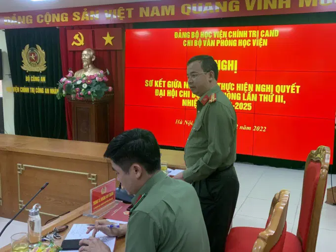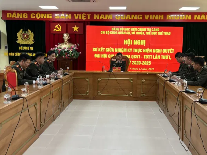 Thực hiện Chương trình công tác toàn khóa của Đảng ủy Học viện; Chương trình công tác năm học 2022-2023 và Kế hoạch số 188-KH/ĐUT03, ngày 03-11-2022 của Đảng ủy Học viện Chính trị CAND về sơ kết giữa nhiệm kỳ thực hiện Nghị quyết Đại hội Đảng bộ Học viện Chính trị CAND lần thứ II, nhiệm kỳ 2020-2025, trong thời gian từ ngày 30/11/2022 đến ngày 15/12/2022, các tổ chức đảng trực thuộc Đảng ủy Học viện đã tổ chức Hội nghị sơ kết giữa nhiệm kỳ thực hiện Nghị quyết Đại hội đảng bộ, chi bộ nhiệm kỳ 2020-2025.