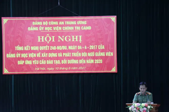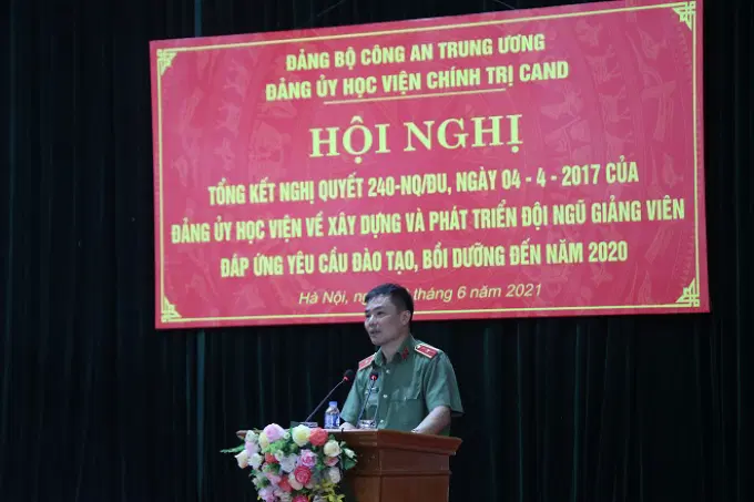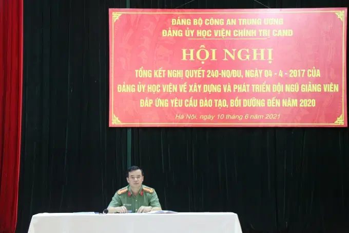 Ngày 10/6/2021 tại Hà Nội, Đảng ủy Học viện Chính trị Công an nhân dân tổ chức Hội nghị tổng kết Nghị quyết số 240 - NQ/ĐU về “Xây dựng và phát triển đội ngũ giảng viên Học viện Chính trị Công an nhân dân đáp ứng yêu cầu đào tạo, bồi dưỡng đến năm 2020” (Nghị quyết 240). Đồng chí Trung tướng, PGS.TS Trần Vi Dân, Bí thư Đảng ủy, Giám đốc Học viện Chính trị Công an nhân dân chủ trì Hội nghị. Về phía khách mời có đồng chí Thiếu tướng, PGS.TS Đỗ Anh Tuấn, Bí thư Đảng ủy, Cục trưởng Cục Đào tạo; Đại diện lãnh đạo các phòng chức năng của X01, X02. Tham dự Hội nghị còn có các đồng chí trong Ban Thường vụ Đảng ủy, Ban Giám đốc Học viện Chính trị Công an nhân dân; các đồng chí trong Đảng ủy, chi ủy các chi bộ cùng toàn thể đảng viên, giảng viên của Học viện.