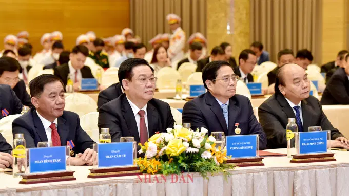 Tại buổi lễ, được sự ủy quyền của Lãnh đạo Đảng và Nhà nước Lào, Ủy viên Bộ Chính trị, Thường trực Ban Bí thư Trung ương Đảng Nhân dân cách mạng Lào, Phó Chủ tịch Nước Lào Bounthong Chitmany đã trao tặng Thủ tướng Chính phủ Phạm Minh Chính và Chủ tịch Quốc hội Vương Đình Huệ Huân chương Vàng quốc gia. Đây là Huân chương cao quý nhất của Đảng, Nhà nước Lào nhằm ghi nhận công lao, sự đóng góp to lớn của Thủ tướng Chính phủ Phạm Minh Chính và Chủ tịch Quốc hội Vương Đình Huệ đối với việc củng cố, vun đắp mối quan hệ hữu nghị vĩ đại, tình đoàn kết đặc biệt và hợp tác toàn diện giữa hai Đảng, hai Nhà nước và nhân dân hai nước trong suốt thời gian qua.