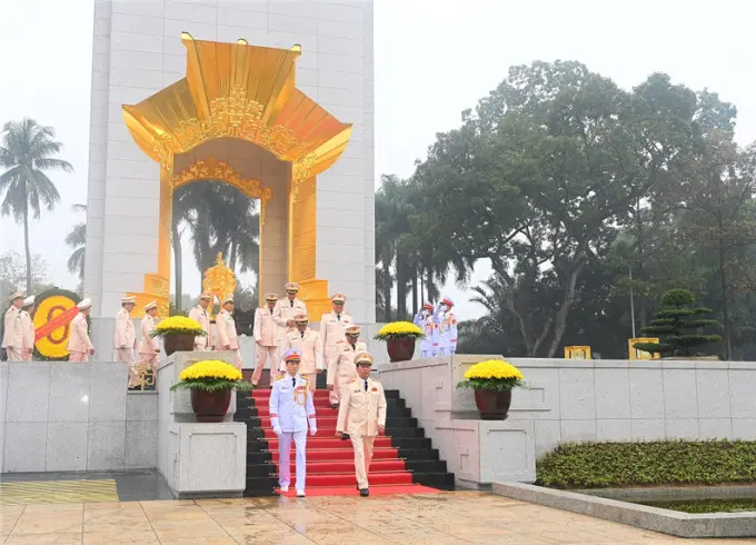 Đoàn đại biểu Đảng ủy Công an Trung ương, Bộ Công an đặt vòng hoa tưởng niệm các Anh hùng liệt sỹ tại Đài tưởng niệm các Anh hùng liệt sỹ