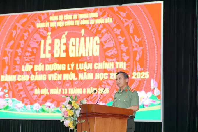 Phát biểu tại buổi lễ, đồng chí Trung tướng Phan Xuân Tuy, Bí thư Đảng uỷ Học viện đã biểu dương tinh thần, trách nhiệm của Ban Tổ chức trong công tác tham mưu, chuẩn bị các điều kiện để tổ chức lớp học và kết quả học tập của học viên tham gia lớp học. Lớp học được diễn ra trong bối cảnh lấy ý kiến về dự thảo Nghị quyết sửa đổi, bổ sung một số điều của Hiến pháp năm 2013, tổ chức sắp xếp đơn vị hành chính các cấp và xây dựng mô hình tổ chức chính quyền địa phương 02 cấp, vận hành tổ chức chính trị mới từ Trung ương đến địa phương, một cuộc cách mạng tạo nền tảng vững chắc đưa đất nước bước vào kỷ nguyên phát triển. Cũng là thời điểm sơ kết công tác Công an 6 tháng đầu năm và triển khai nhiệm vụ, phương hướng công tác Công an 6 tháng cuối năm 2025 và tròn 4 tháng triển khai mô hình công an cấp xã theo hướng tinh gọn tổ chức bộ máy và triển khai vận hành mô hình bộ máy mới. Vì vậy, yêu cầu mỗi đảng viên, đặc biệt là đảng viên trẻ phải không ngừng nổ lực phấn đấu, rèn luyện tu dưỡng, nâng cao năng lực tự học, tự nghiên cứu để hoàn thành tốt nhiệm vụ được giao.