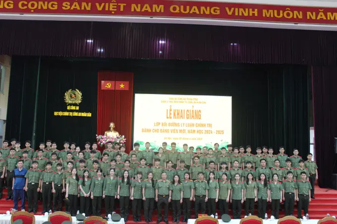 Đồng chí cũng nhấn mạnh: lớp đảng viên mới là chương trình bắt buộc, có ý nghĩa đối với các đảng viên trẻ, giúp cho đảng viên trẻ nắm được nội dung cách mạng của Đảng ta, đường lối phát triển kinh tế, văn hóa, xã hội để sẵn sang bước vào kỷ nguyên mới, kỷ nguyên vươn mình của dân tộc Việt Nam, đích đến của kỷ nguyên vươn minh là giàu mạnh, phồn vinh, thịnh vượng, sánh vai với các cường quốc năm châu. Lớp học được diễn ra trong bối cảnh đại hội đảng bộ các cấp nhiệm kỳ 2025 -2030 tiến tới Đại hội đại biểu toàn quốc lần thứ XIV của Đảng. Do vậy phải thường xuyên, cập nhật theo dõi các tài liệu, văn kiện về đại hội đảng các cấp, có kiến thức sâu rộng về lý luận chính trị để học viên có nhận thức về xã hội càng rõ hơn, có tư duy chính trị ở tầm cao hơn để hoàn thành xuất sắc nhiệm vụ được giao với tâm thế, quyết tâm cao độ. Do đó, trong những năm qua Đảng ủy Học viện Chính trị CAND đã xây dựng nhiều Nghị quyết, chương trình kế hoạch cụ thể, tập trung chỉ đạo các tổ chức Đảng trực thuộc, các tổ chức quần chúng đề ra kế hoạch, mục tiêu phấn đấu, không ngừng nâng cao số lượng, chất lượng đảng viên ưu tú đứng trong hàng ngũ của Đảng cộng sản Việt Nam.