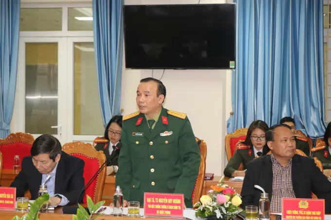 Đồng chí Đại tá, TS Nguyễn Huy Hoàng, Phó Hiệu trưởng Trường Sĩ quan chính trị, Bộ Quốc phòng phát biểu