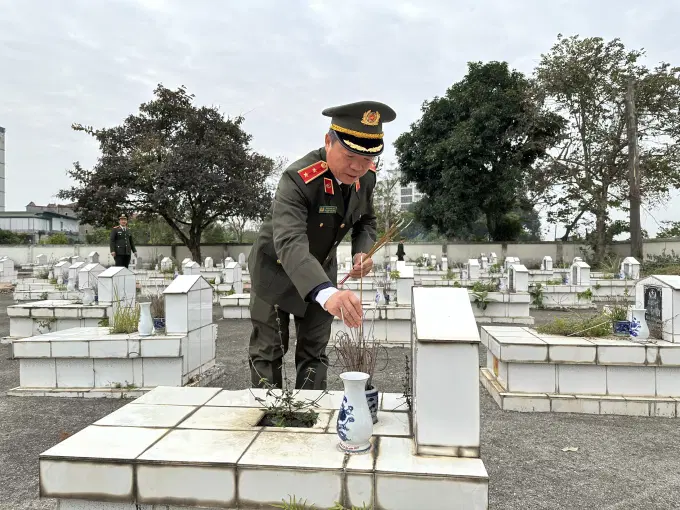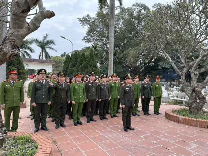 Đoàn cán bộ và học viên Học viện Chính trị Công an nhân dân dâng hương tri ân các anh hùng liệt sĩ tại nghĩa trang xã Tiên Dược, huyện Sóc Sơn, Hà Nội