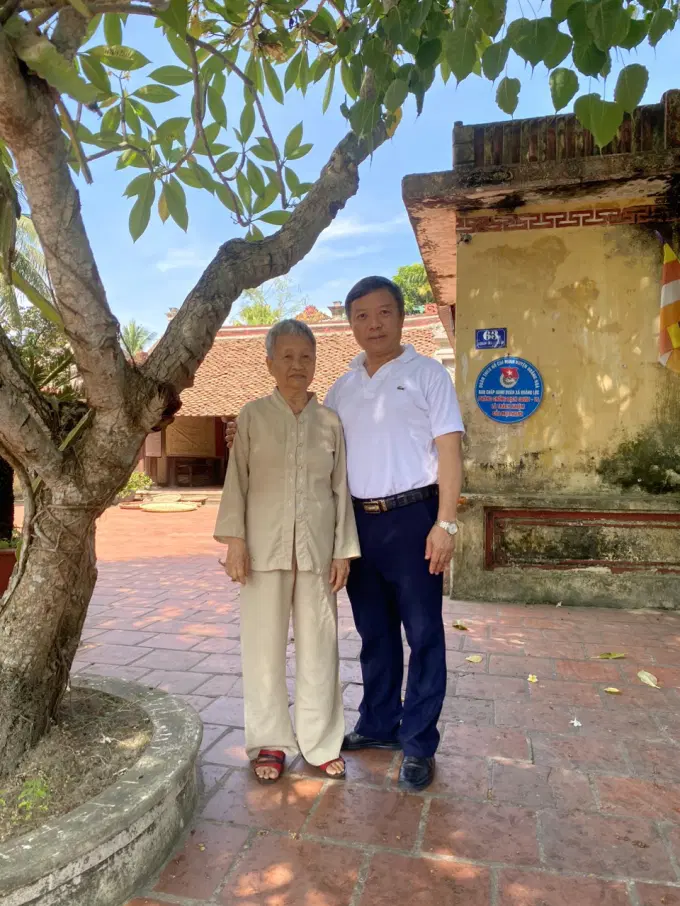 Đồng chí Giám đốc Học viện chụp ảnh cùng Cụ là con cháu đời thứ 8 trông coi Nhà thờ Nguyễn Quỳnh