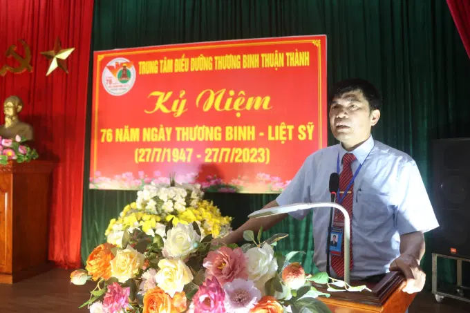 Ông Nguyễn Văn Hương, Giám đốc Trung tâm điều dưỡng thương binh Thuận Thành phát biểu