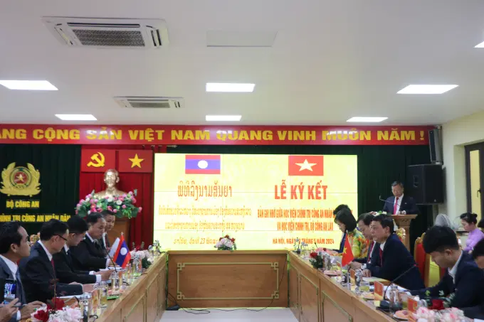Căn cứ Hiệp định hợp tác giữa Bộ Công an nước Cộng hòa Xã hội Chủ nghĩa Việt Nam và Bộ Công an nước Cộng hòa Dân chủ Nhân dân Lào; Kế hoạch triển khai Hiệp định hợp tác giữa Bộ Công an hai nước năm 2024, ký ngày 29/9/2023; được sự đồng ý của lãnh đạo Bộ Công an hai nước; ngày 23/5/2024, Đoàn Đại biểu cấp cao Học viện Chính trị, Bộ Công an Lào đã đến thăm, làm việc và ký Bản ghi nhớ với Học viện Chính trị CAND Việt Nam.
