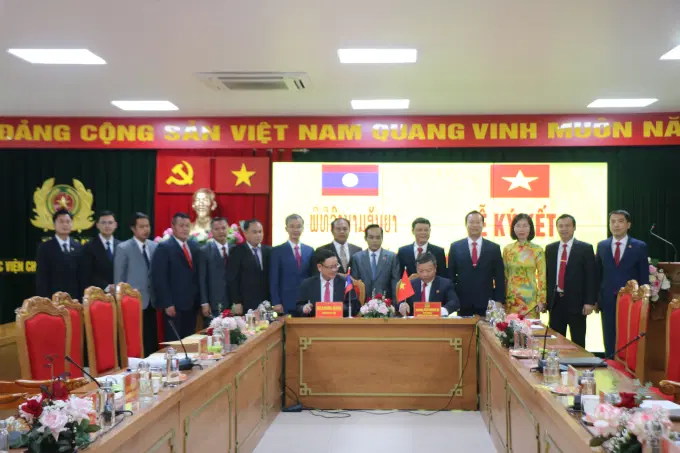 Học viện Chính trị CAND Việt Nam và Học viện Chính trị Bộ Công an Lào ký Bản ghi nhớ hợp tác