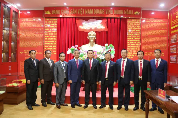 Đoàn đại biểu thăm Phòng Truyền thống, lớp học tiếng Lào, Phòng sinh hoạt chính trị Việt Lào tại Học viện Chính trị CAND Việt Nam