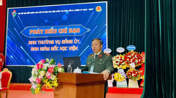 Phát biểu chỉ đạo tại đại hội, đồng chí PGS.TS, NGƯT, Trung tướng Phan Xuân Tuy, Bí thư Đảng ủy, Giám đốc Học viện thay mặt Đảng ủy, Ban Giám đốc Học viện chúc mừng các đồng chí Ban Chấp hành nhiệm kỳ mới trúng cử với tỷ lệ phiếu cao, điều đó thể hiện các đồng chí thực sự là những hạt nhân, những cán bộ phong trào nòng cốt, thể hiện ý chí nguyện vọng của đông đảo đoàn viên thanh niên toàn Học viện. Các đồng chí sẽ là cầu nối giữa Đảng ủy, Ban Giám đốc Học viện với đoàn viên thanh niên, đưa đoàn viên thanh niên vào các phong trào hành động cách mạng tham gia xây dựng Học viện ngày càng phát triển. Đồng chí cũng gửi lời cảm ơn Ban Thanh niên CAND trong thời gian qua đã quan tâm, chỉ đạo và tạo điều kiện ủng hộ các phong trào của tuổi trẻ Học viện, cảm ơn sự phối hợp, đồng hành của cấp uỷ đảng bộ, chi bộ, tổ chức quần chúng đối với Đoàn Thanh niên Học viện. Đồng chí nhấn mạnh thực hiện Nghị quyết số 12-NQ/TW ngày 16/3/2022 của Bộ Chính trị về đẩy mạnh xây dựng lực lượng CAND thật sự trong tình hình mới; Nghị quyết số 18-NQ/TW ngày 25/10/2017 của Ban Chấp hành Trung ương Đảng khóa XIII về một số vấn đề tiếp tục đổi mới, sắp xếp tổ chức bộ máy của hệ thống chính trị tinh gọn, hoạt động, hiệu lực, hiệu quả; đặc biệt trong bối cảnh đất nước ta đang bước vào kỷ nguyên mới, đòi hỏi tổ chức đoàn, thế hệ trẻ thanh niên Công an nói chung, đoàn viên thanh niên Học viện Chính trị nói riêng cần nỗ lực, cố gắng, xung kích, tình nguyện, phát huy vai trò, trách nhiệm, sứ mệnh của thanh niên thời kỳ mới, nâng cao năng lực trình độ, phát triển toàn diện, đáp ứng yêu cầu, nhiệm vụ trong kỷ nguyên vươn mình của dân tộc; trong đó nhấn mạnh việc ứng dụng khoa học công nghệ, chuyển đổi số trong công tác giảng dạy, học tập, phục vụ hiệu quả nhiệm vụ được giao. Tại Đại hội hôm nay, đồng chí Giám đốc Học viện cũng đề nghị chi ủy, lãnh đạo các đơn vị chức năng của Học viện phải đặc biệt quan tâm đến công tác đoàn và phong trào thanh niên của Học viện. Phối hợp và tạo điều kiện thuận lợi cho đoàn hoạt động. Đồng thời phải quán triệt, chỉ đạo và định hướng cho đoàn viên thanh niên đơn vị phát huy tốt vị trí, vai trò của đoàn trong việc tham gia thực hiện nhiệm vụ chính trị của đơn vị, nhất là trong công tác tham mưu, giảng dạy, học tập, nghiên cứu khoa học...Trên tinh thần đó, với kết quả đã đạt được của nhiệm kỳ qua, đồng chí tin tưởng rằng Đoàn Thanh niên Học viện sẽ làm tốt những mục tiêu đề ra, thực hiện thắng lợi mọi nhiệm vụ được giao, đóng góp xứng đáng vào thành tích chung của Học viện và công tác Đoàn, phong trào thanh niên của Bộ Công an.