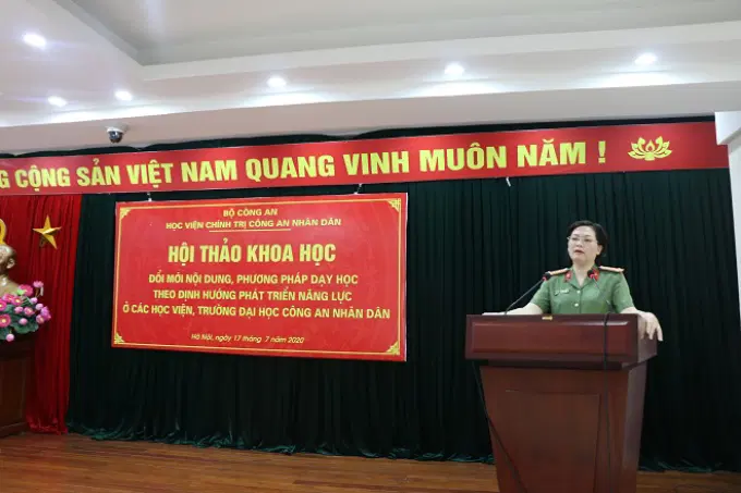 Ngày 17/7/2020, Học viện Chính trị Công an nhân dân tổ chức Hội thảo khoa học “Đổi mới nội dung, phương pháp dạy học theo định hướng phát triển năng lực ở các học viện, trường đại học Công an nhân dân”. Đồng chí Đại tá, PGS.TS Đinh Ngọc Hoa, Phó Giám đốc Học viện Chính trị Công an nhân dân chủ trì Hội thảo.