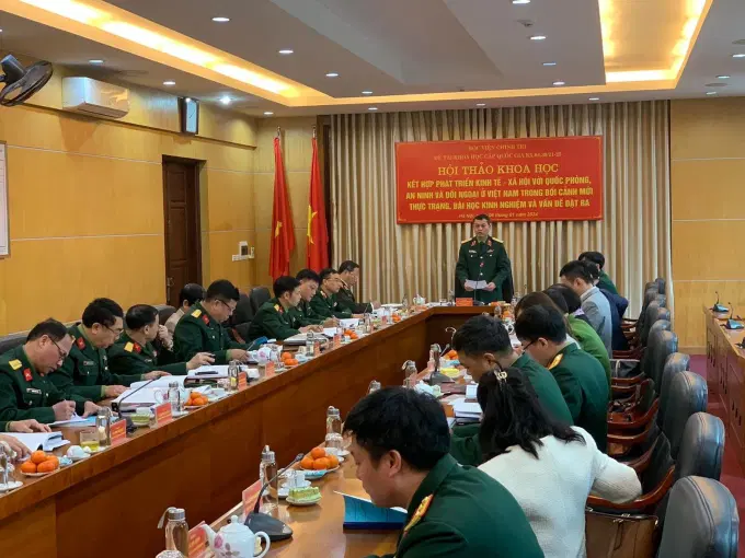 Sáng ngày 06/01/2024, Học viện Chính trị - Bộ Quốc phòng tổ chức Hội thảo khoa học “Kết hợp phát triển kinh tế - xã hội với quốc phòng, an ninh và đối ngoại ở Việt Nam trong bối cảnh mới - Thực trạng, bài học kinh nghiệm và vấn đề đặt ra”. Chủ trì Hội thảo đồng chí Trung tướng, PGS.TS Nguyễn Văn Bạo, Giám đốc Học viện Chính trị, Bộ Quốc phòng, chủ nhiệm đề tài khoa học cấp quốc gia “Kết hợp phát triển kinh tế - xã hội với quốc phòng, an ninh và đối ngoại ở Việt Nam trong bối cảnh mới”, mã số KX.04.30/21-25.