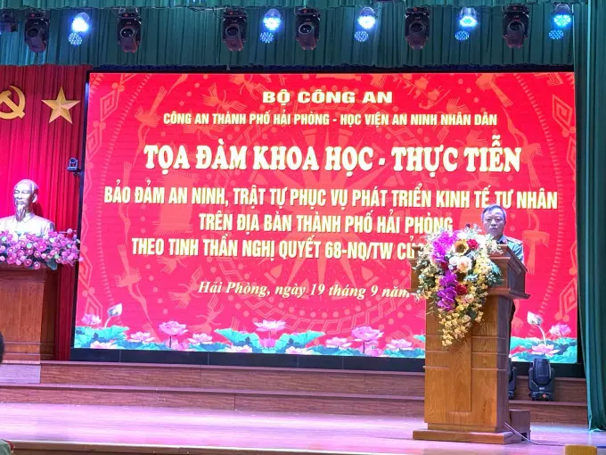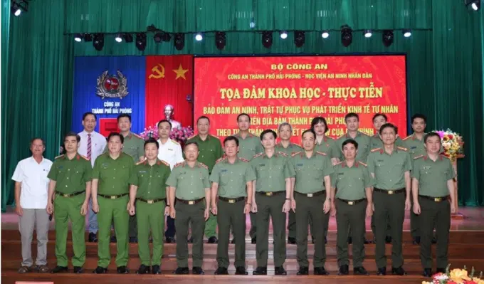 Chiều ngày 19/9/2025, tại Thành phố Hải Phòng, Công an thành phố Hải Phòng phối hợp với Học viện An ninh nhân dân tổ chức Toạ đàm khoa học - thực tiễn “Bảo đảm an ninh, trật tự phục vụ phát triển kinh tế tư nhân trên địa bàn thành phố Hải Phòng theo tinh thần Nghị quyết số 68-NQ/TW của Bộ Chính trị”.