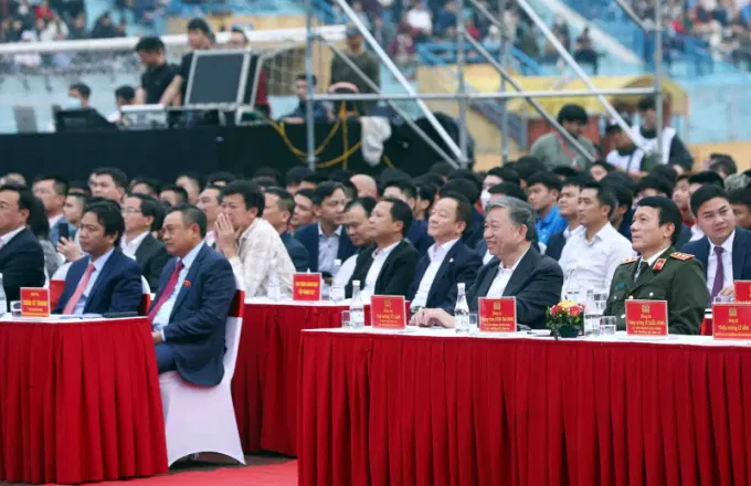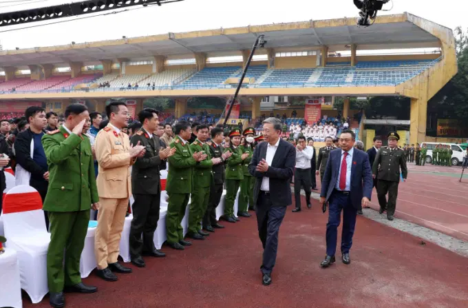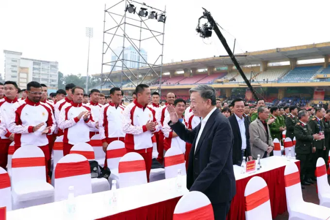Bộ trưởng Tô Lâm đến chúc mừng, cổ vũ tinh thần CLB Bóng đá CAHN.