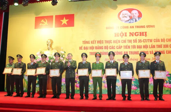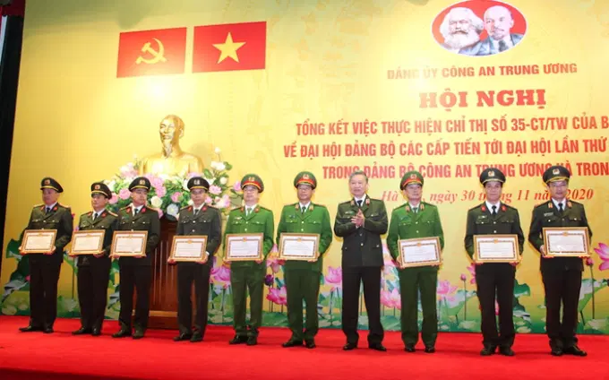Nhân dịp này, Ban Thường vụ Đảng ủy Công an Trung ương đã tặng Bằng khen cho 48 tập thể, 104 cá nhân các đơn vị trực thuộc Bộ có thành tích xuất sắc trong triển khai thực hiện Chỉ thị số 35 của Bộ Chính trị và trong tham mưu phục vụ tổ chức thành công Đại hội Đảng bộ Công an Trung ương lần thứ VII; Bộ trưởng Tô Lâm tặng Bằng khen cho 54 tập thể, 125 cá nhân thuộc Công an các đơn vị, địa phương có thành tích xuất sắc trong triển khai thực hiện Chỉ thị số 35 của Bộ Chính trị và trong tham mưu phục vụ tổ chức thành công Đại hội Đảng bộ Công an Trung ương lần thứ VII.
