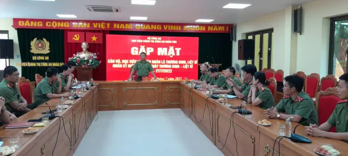 Nhân dịp Kỷ niệm 75 năm ngày Thương binh - Liệt sĩ (27/7/1947 – 27/7/2022), ngày 26/7/2022, Học viện Chính trị Công an nhân dân đã tổ chức buổi gặp mặt nhằm tôn vinh các đồng chí cán bộ, học viên có thân nhân là thương binh, liệt sĩ đang công tác, học tập tại Học viện. Đồng chí Thiếu tướng, PGS.TS Phan Xuân Tuy, Bí thư Đảng ủy, Giám đốc Học viện chủ trì buổi lễ. Tham dự có đại diện lãnh đạo các đơn vị thuộc Học viện và các đồng chí cán bộ, học viên có thân nhân là thương binh, liệt sĩ.
