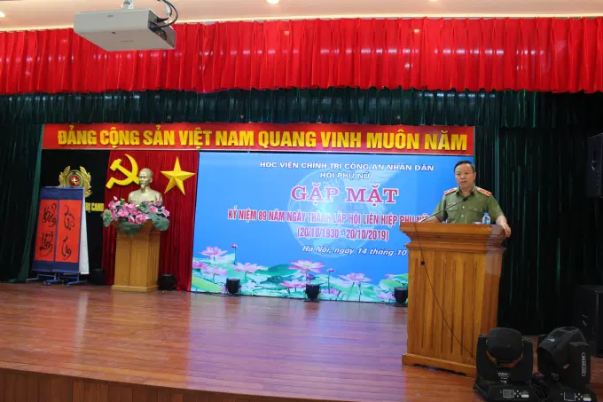 Ngày 14/10/2019, Hội Phụ nữ Học viện Chính trị Công an nhân dân đã tổ chức buổi Gặp mặt kỷ niệm 89 năm ngày thành lập Hội Liên hiệp Phụ nữ Việt Nam (20/10/1930 - 20/10/2019). Đồng chí Thiếu tướng, PGS.TS Phan Xuân Tuy, Phó Giám đốc Học viện Chính trị Công an nhân dân, Trưởng Ban Vì sự tiến bộ phụ nữ, công tác gia đình và trẻ em của Học viện tham dự buổi Gặp mặt. Tới dự còn có các đồng chí đại diện lãnh đạo các đơn vị thuộc Học viện, Ban Chấp hành Đoàn Thanh niên, Công đoàn và toàn thể hội viên Hội Phụ nữ của Học viện.