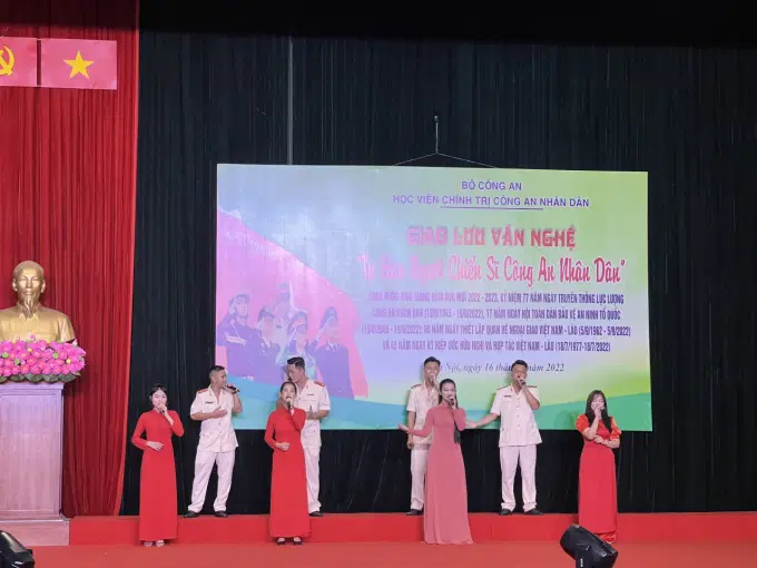 Nằm trong chuỗi các  hoại động kỷ niệm các ngày lễ lớn, trọng đại của đất nước: 77 năm cách mạng tháng 8, Quốc khánh 2/9, 77 năm Ngày truyền thống lực lượng CAND Việt Nam (19/8/1945-19/8/2022) và 17 năm Ngày hội toàn dân bảo vệ an ninh tổ quốc (19/8/2005-19/8/2022), 60 năm Ngày thiết lập quan hệ ngoại giao Việt Nam - Lào (5/9/1962-5/9/2022). Chiều và tối ngày 16/8/2022 Học viện Chính trị CAND tổ chức các hoạt động giao lưu thể thao, văn hóa, văn nghệ giữa các đơn vị trên địa bàn và học viên quốc tế đang học tập tại Học viện. Chương trình giao lưu thể thao với sự tham gia của học viên hệ đào tạo chính quy của Việt Nam và học viên Lào, được lập thành 4 đội, tham gia thi đấu với 3 nội dung: bóng chuyền, kéo co, nhảy bao bố. Chương trình giao lưu văn nghệ với sự tham gia của các đơn vị lực lượng vũ trang đóng quân trên địa bàn và chính quyền, nhân dân địa phương với 14 tiết mục đặc sắc đến từ các đơn vị khách mời và đơn vị chủ trì gồm: Huyện Sóc Sơn, Xã Tiên Dược, Thôn Lương Châu, Trường Cao đẳng ANND 1, Công an huyện Sóc Sơn, Trung đoàn CSCĐ Thủ đô, Trung tâm Huấn luyện và Sử dụng động vật nghiệp vụ (K02).