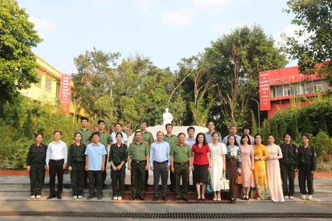 Các đồng chí đại biểu dâng hương tượng đài Chủ tịch Hồ Chí Minh; tham quan Phòng truyền thống, Trung tâm chỉ huy; thăm, gặp gỡ học viên lớp Bồi dưỡng quản trị nhân lực cho cán bộ cấp cao Bộ Nội vụ Camphuchia đang học tập tại Học viện Chính trị CAND
