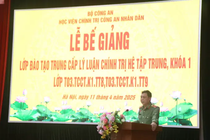 Chiều ngày 11/4/2025, Học viện Chính trị CAND tổ chức Bế giảng lớp đào tạo trung cấp lý luận chính trị, hệ tập trung - Khóa 1 (Lớp T03.CCCT.K1.TT8 và T03.CCCT.K1.TT9) mở tại Học viện. Đồng chí Thiếu tướng Nguyễn Như Lôi, Phó Bí thư Đảng uỷ, Phó Giám đốc Học viện Chính trị Công an nhân chủ trì buổi lễ.