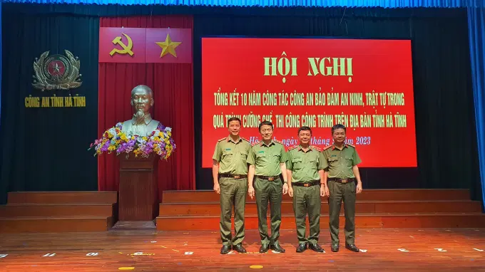 Chiều ngày 26/9, Công an tỉnh Hà Tĩnh tổ chức hội nghị tổng kết 10 năm công tác công an tham gia bảo đảm an ninh, trật tự trong quá trình cưỡng chế, thi công công trình trên địa bàn tỉnh Hà Tĩnh. Dự hội nghị có đồng chí Thượng tướng Lương Tam Quang, Uỷ viên BCH Trung ương Đảng, Thứ trưởng Bộ Công an; đồng chí Hoàng Trung Dũng, Uỷ viên Trung ương Đảng, Bí thư Tỉnh uỷ; đồng chí Võ Trọng Hải, Chủ tịch UBND tỉnh.